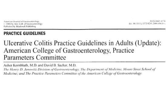 First major in dietary management of ulcerative colitis. Bibiloni 2005.[[[Kornbluth et al. Ulcerative Colitis Practice Guidelines in Adults (Update) American College of Gastroenterology, Practice Parameters Committee. Am. Coll. Of Gastroenterology. 2004]]]((()))