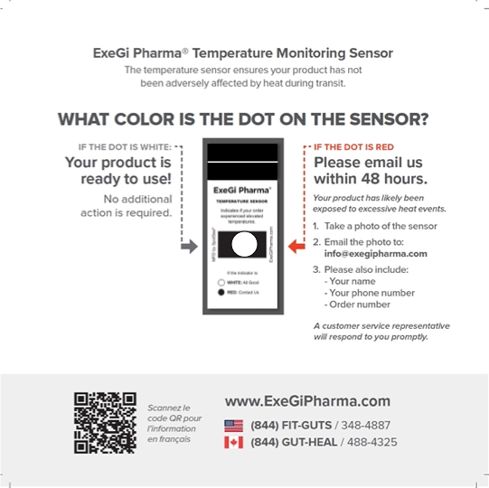 That helps to ensure your order did not experience impactful heat events during shipping. Visbiome can be stored at room temperature for up to one week without adversely affecting potency.