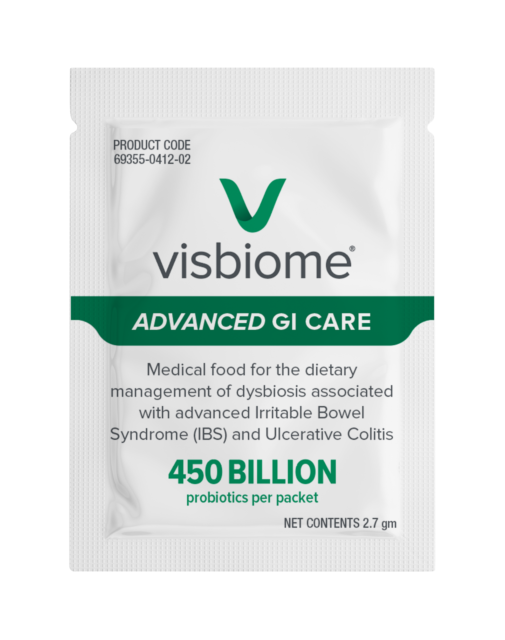 Visbiome is a high potency medical food probiotic intended for the dietary management of dysbiosis associated with Irritable Bowel syndrome (IBS), Ulcerative Colitis (UC), Antibiotic-Associated Diarrhea, and ileal pouch management.